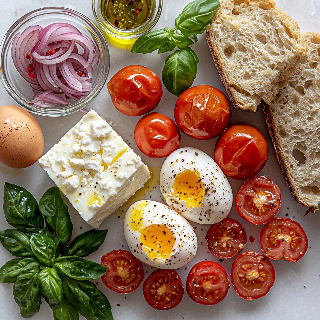 These ingredients are wonderfully straightforward yet each plays a crucial role in creating the rich and vibrant flavor profile of this dish. From the salty creaminess of feta to the fresh brightness of basil, every component adds something special.