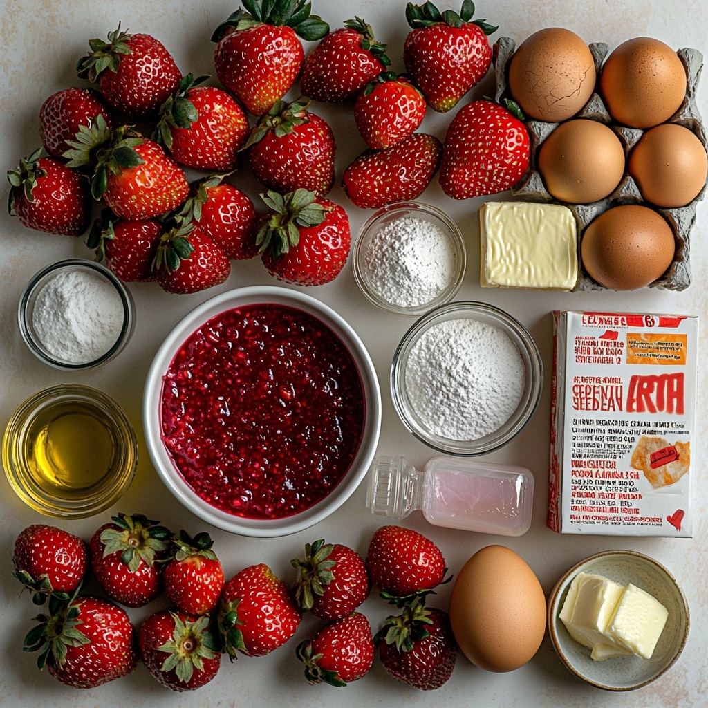 This recipe relies on a handful of simple but key ingredients that make all the difference. Each component brings out the natural sweetness and tender texture of the strawberries, while the gelatin enhances that iconic strawberry flavor, making your cake truly magical.