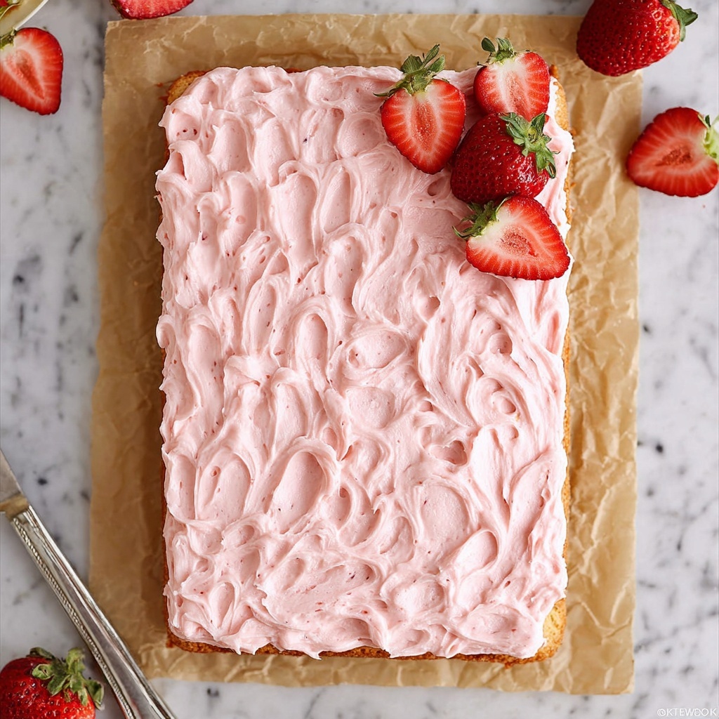 To make your Best Strawberry Sheet Cake Recipe truly pop for guests, add fresh slices of strawberries or a sprinkle of edible flower petals on top. A light dusting of powdered sugar over the frosting can add a delicate, elegant touch that invites everyone to the table.