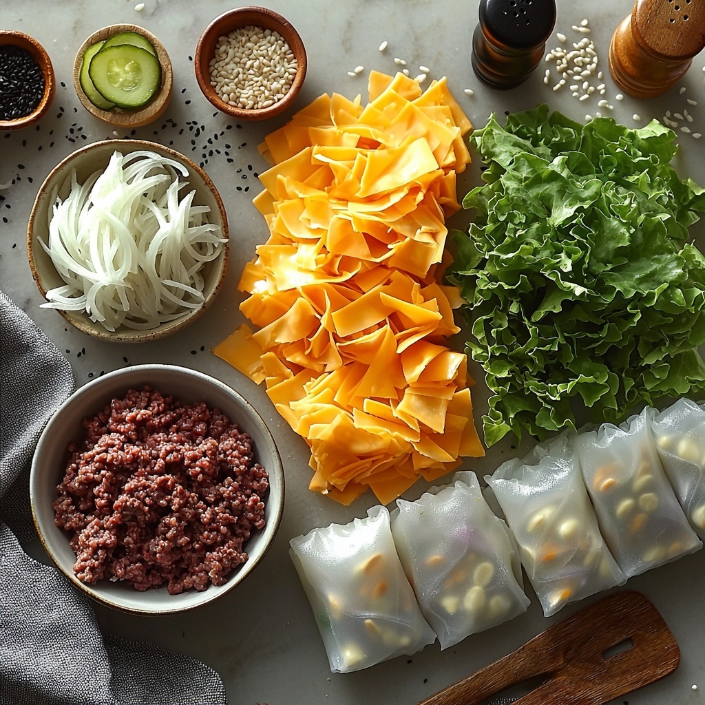 These ingredients are simple staples, but each one plays a vital role in building the flavors and textures of your Big Mac Rice Paper Rolls: A Low-Carb Delight Recipe. From the juicy, seasoned ground beef to the crisp lettuce and tangy pickles, every part shines through in harmony.