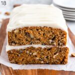 9. Serve: Slice the glazed carrot bread into ¼ inch slices and enjoy as a delightful snack or dessert.
