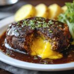 Cheeseburger Lava Cake Molten Melt is a decadent and flavorful twist on the classic burger, featuring a juicy beef patty stuffed with molten cheddar cheese. Baked to perfection, this dish combines the richness of sharp cheddar with seasoned ground beef, delivering a gooey cheese center that bursts with every bite. Perfect as a main course, it can be served on brioche buns with your favorite toppings or enjoyed on its own for a satisfying, indulgent meal.