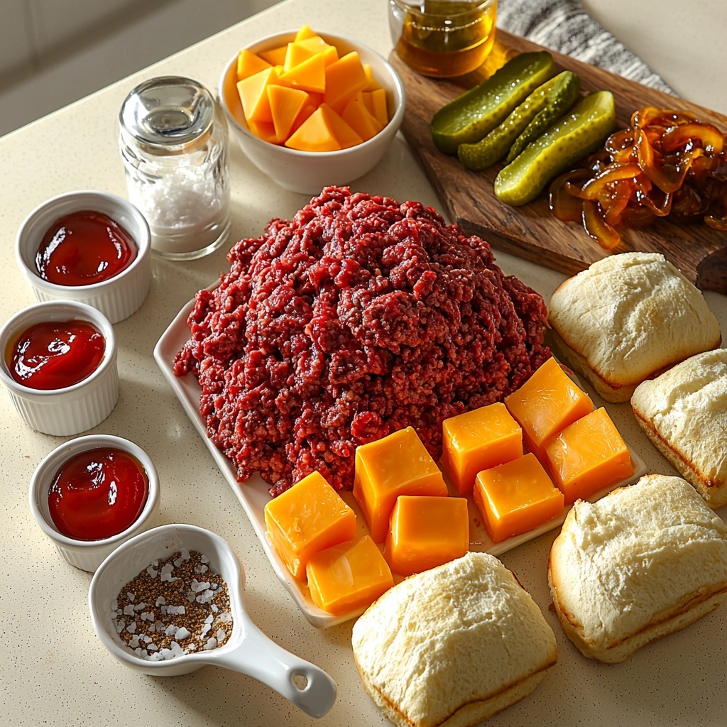 These ingredients are simple yet essential to capture all the juicy, cheesy goodness and deep flavors that make the dish so irresistible. Each one plays a key role—from seasoning the beef perfectly to ensuring that luscious molten cheese melts just right inside.