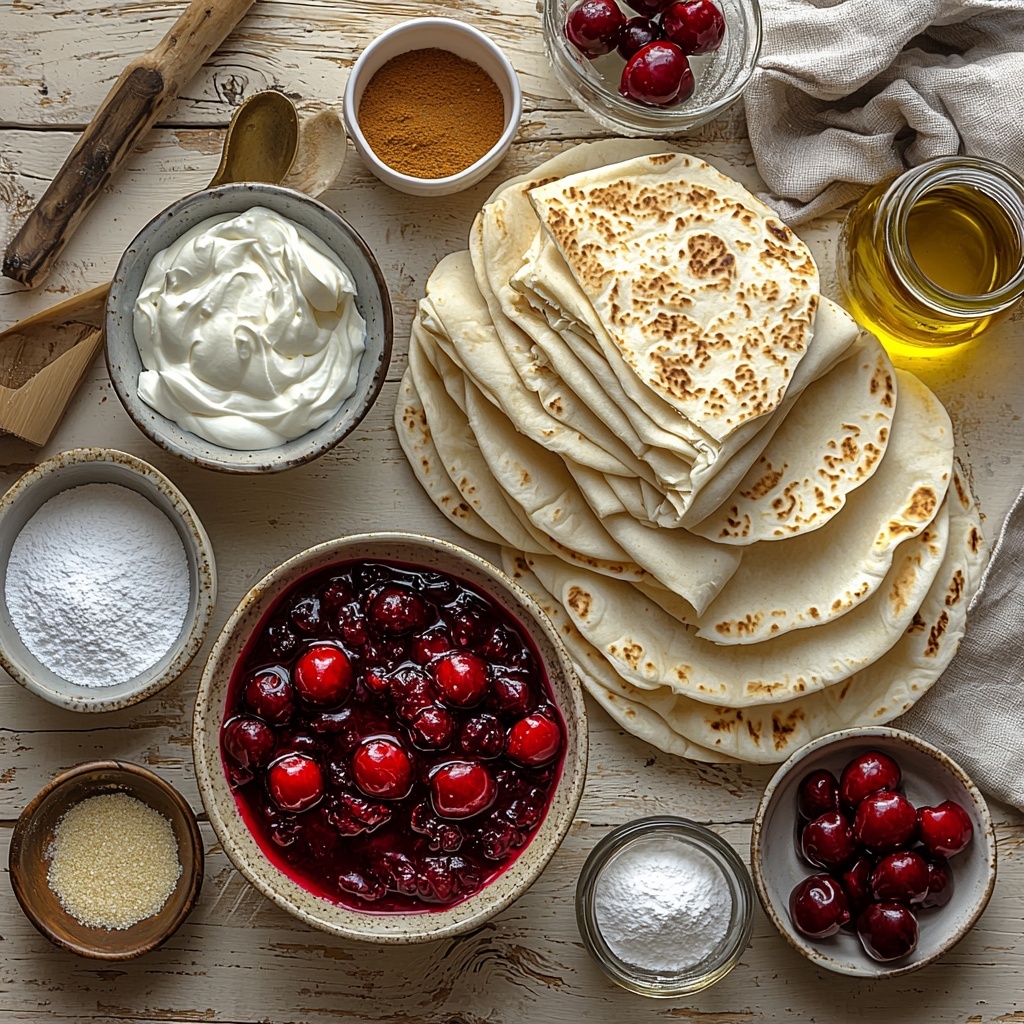 Spread about 2 to 3 tablespoons of the cheesecake mixture evenly across the center of each tortilla. Then spoon 1 to 2 tablespoons of your cherry pie filling right on top of the cheesecake layer—this contrast of creamy and fruity will wow your taste buds. Be careful not to overfill so you can fold and roll them neatly.