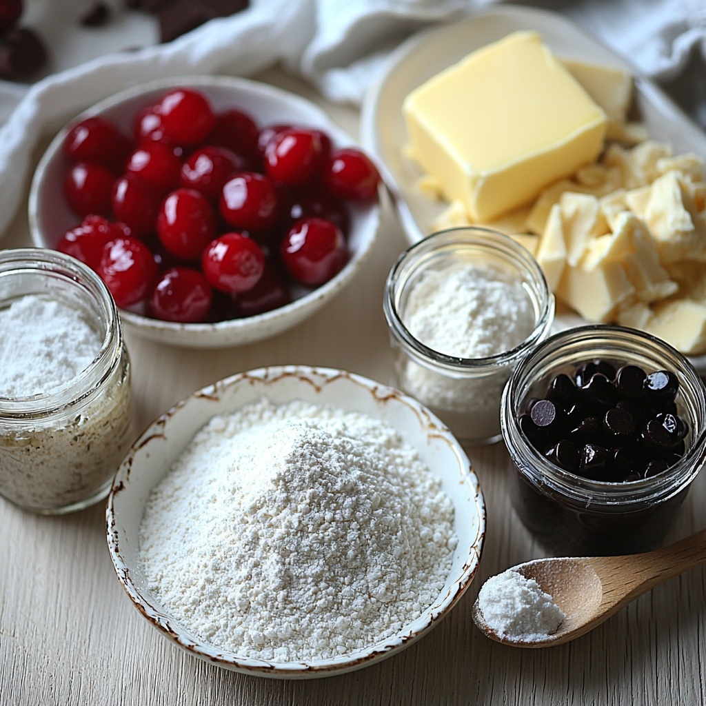 Gathering your ingredients is a great first step, and this recipe uses straightforward, pantry-friendly components that each play a vital role. From the creamy salted butter that gives the cookies their signature richness, to the maraschino cherries that add color and sweetness, every item contributes to the perfect balance of flavor and texture.