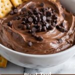 - Garnish the dip: Transfer the prepared dip to a serving bowl. Optionally, sprinkle mini chocolate chips or crushed peanuts on top for added texture and visual appeal.