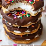 Place the chocolate-coated sandwiches onto the lined baking sheet. If you want to add an extra festive flair, sprinkle holiday sprinkles over the tops before the chocolate begins to harden. Let everything set at room temperature, or pop the tray into the fridge to speed up the process, and soon you’ll have perfectly firm, eye-catching stacks ready to enjoy.