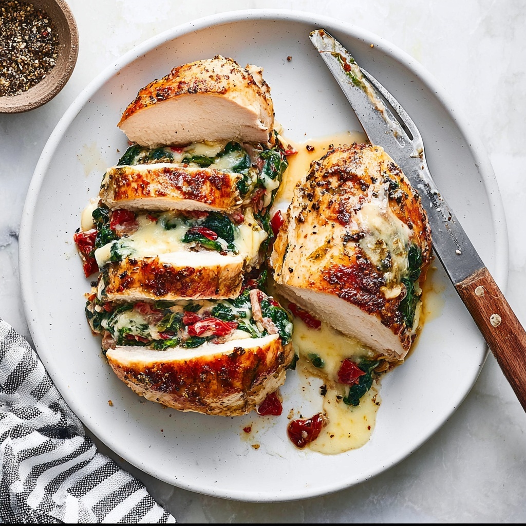 Preheat your oven to 400°F (200°C). Heat 2 tablespoons of olive oil in a large oven-safe pan over medium heat. Sear the stuffed chicken breasts for about 3 minutes per side until they develop a gorgeous, golden crust. Then transfer the pan into the oven and roast for 15 to 18 minutes until the chicken is thoroughly cooked to 165°F (73°C). This two-step cooking method ensures a tender interior with a crispy exterior.