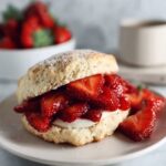 Finally, slice your shortcakes in half and pile on a generous spoonful of strawberries, followed by a cloud of whipped cream. Then top with the other half and add a little extra whipped cream or berries if you’re feeling fancy. You’ve just created a classic dessert that’s as delightful to eat as it is to share.