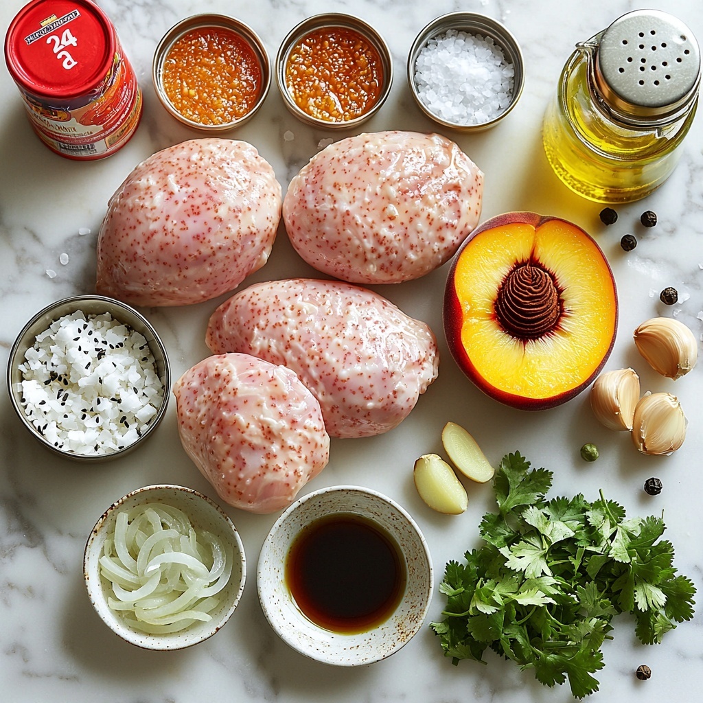 These ingredients are straightforward yet essential, each bringing its own magic to the Coconut Peach Chicken Recipe. From juicy peaches adding natural sweetness to the creamy coconut milk that creates a luscious sauce, every item works in harmony to build layers of flavor and wonderfully textured chicken.