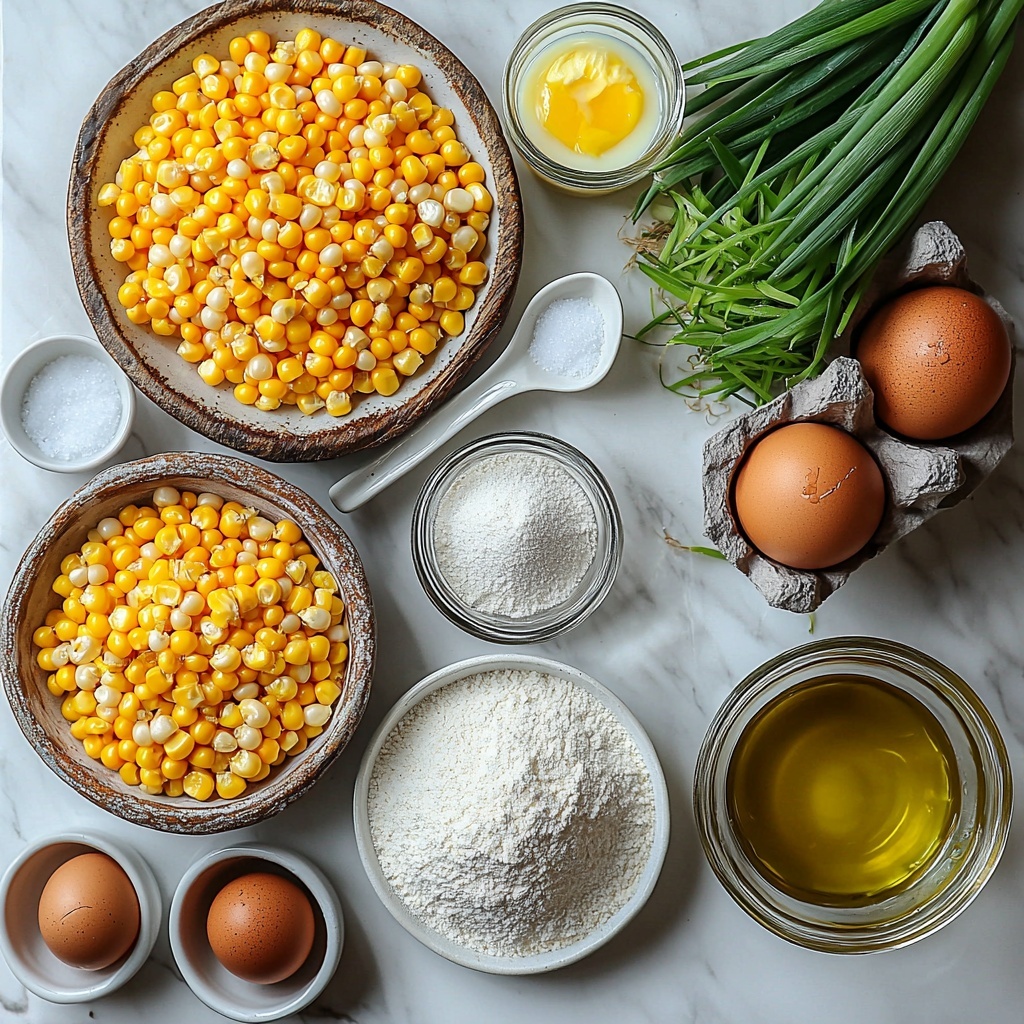 • 2 cups corn kernels (fresh, canned drained, or frozen thawed): The star ingredient that adds a sweet crunch and vibrant color to the fritters.