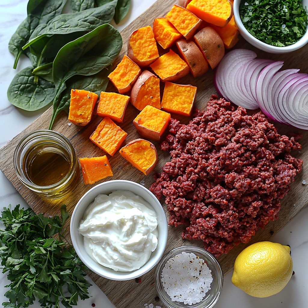 This recipe uses a simple yet carefully chosen set of ingredients that come together beautifully to create a dish full of flavor, texture, and nutrition. Every component plays an essential role, from the spices that season the beef to the fresh greens that add a welcome crispness.