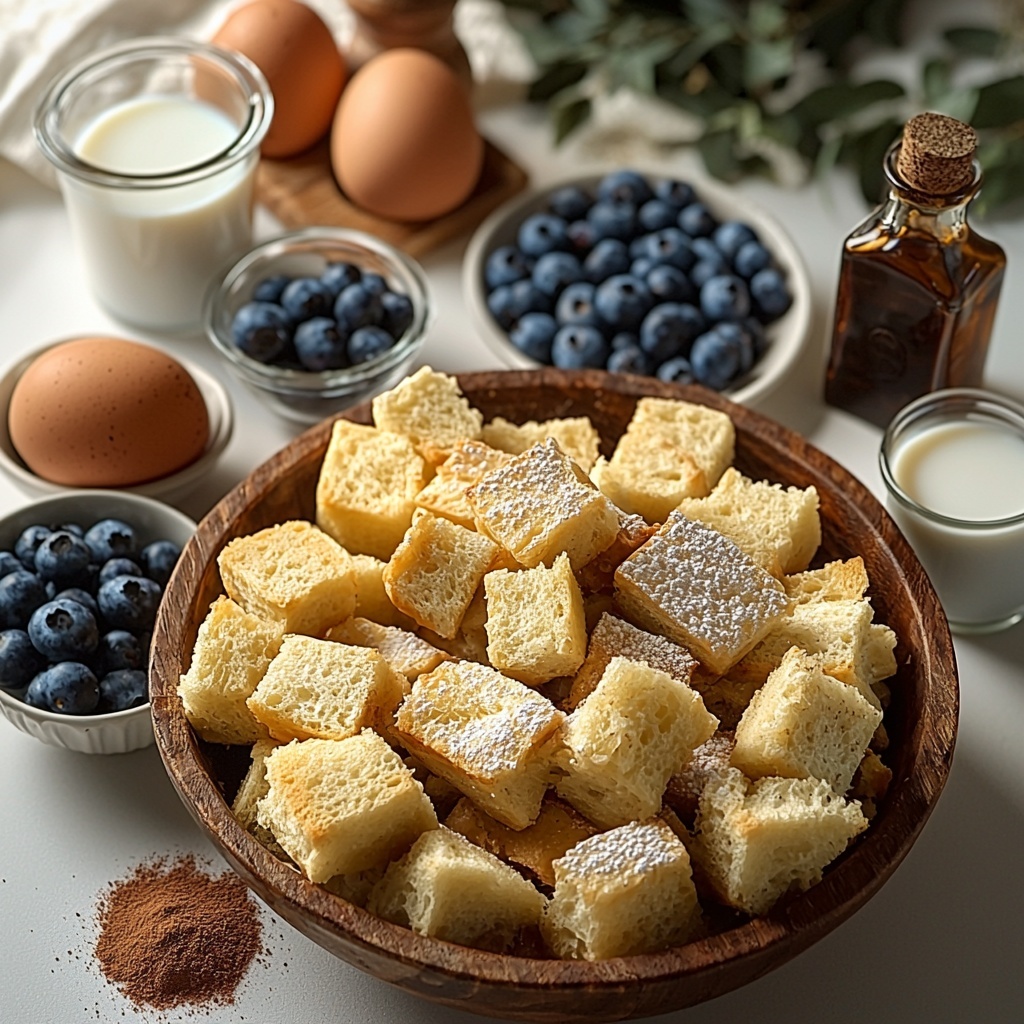 This Cozy Blueberry Bread Pudding Recipe shines with straightforward, accessible ingredients that come together beautifully. Each component plays a role in enhancing the flavor, texture, or aroma, making the final dish irresistibly comforting and packed with wholesome goodness.