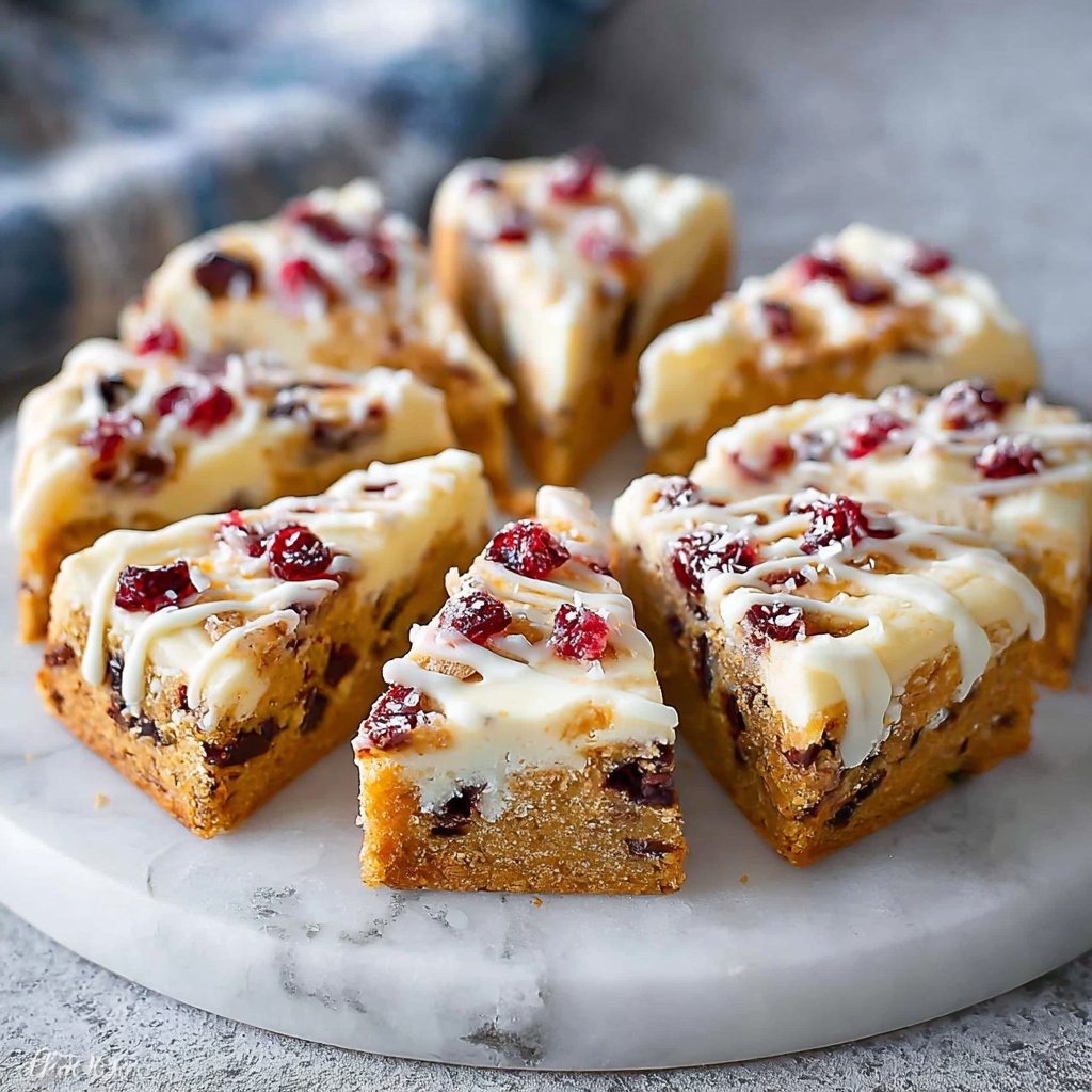 Beat the softened cream cheese with powdered sugar until smooth and fluffy—the perfect creamy top layer. Then blend in your additional orange and vanilla extracts for that bright finishing touch. Spread this frosting evenly over the cooled bars. Finally, sprinkle tossed chopped Craisins all over and drizzle the melted white baking chocolate or almond bark on top in pretty little streaks using a fork. For a neat presentation, chill the bars for an hour before slicing into triangles, then dig in!