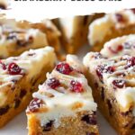 - Frost and Decorate: Spread the cream cheese frosting over the cooled bars. Sprinkle the top evenly with the chopped 1/3 cup Craisins.