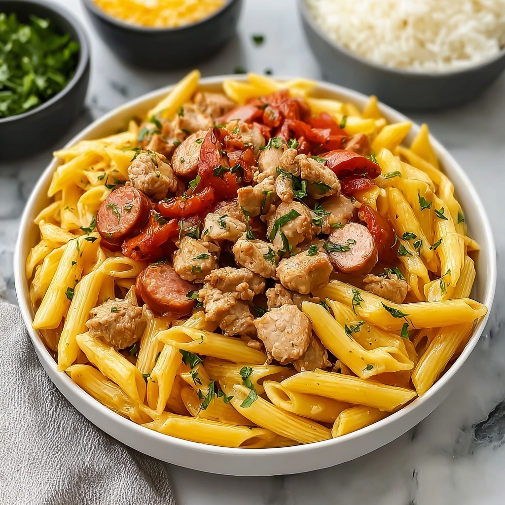Creamy Cajun Chicken and Sausage Pasta is a flavorful, hearty dish combining tender chicken breast, spicy Andouille sausage, and a rich Cajun cream sauce, perfectly tossed with your choice of fettuccine or penne pasta. This easy one-skillet recipe brings a comforting Southern flair to your dinner table in under 40 minutes.