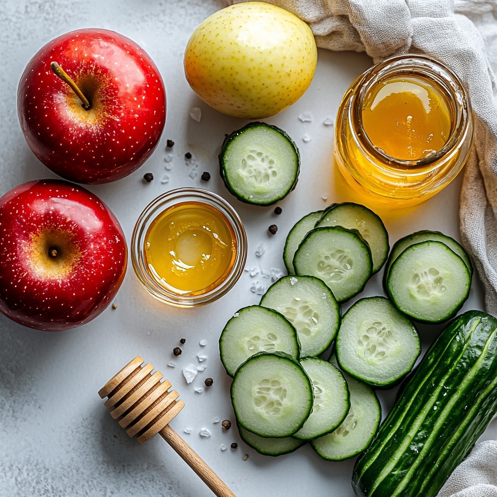 Gathering simple, everyday ingredients is all you need to create this incredible salad. Each component plays a vital role: the cucumbers provide a cool crispness, the apples add a naturally sweet crunch, and the dressing brings a lively, tangy finish that ties everything together.