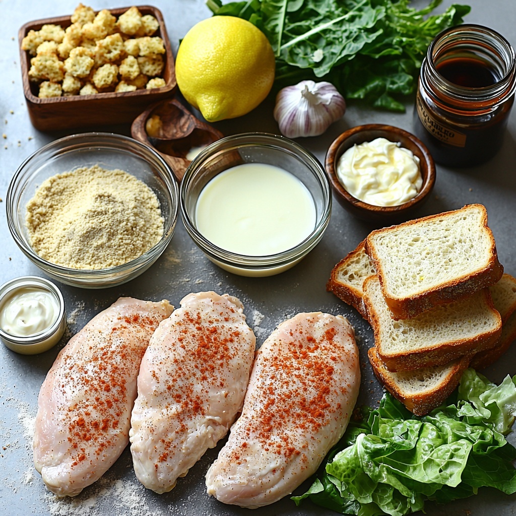 Slice the cooked chicken breasts horizontally, making thinner pieces easier to bite through. Spread the Caesar dressing generously on all slices of bread. Layer chopped romaine lettuce on one slice, then add the chicken and sprinkle with crunchy croutons. Top with the other slice of bread. For a little extra indulgence, consider adding bacon strips or shaved Parmesan before closing the sandwich.