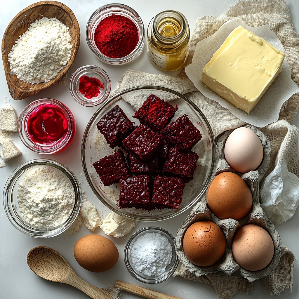 The magic of this Decadent Red Velvet Cheesecake Brownies Recipe lies in its simple but carefully chosen ingredients, each adding a unique element to the final result. From the deep cocoa undertone to the creamy cheesecake swirl, every component plays a crucial role in balancing flavor and texture.