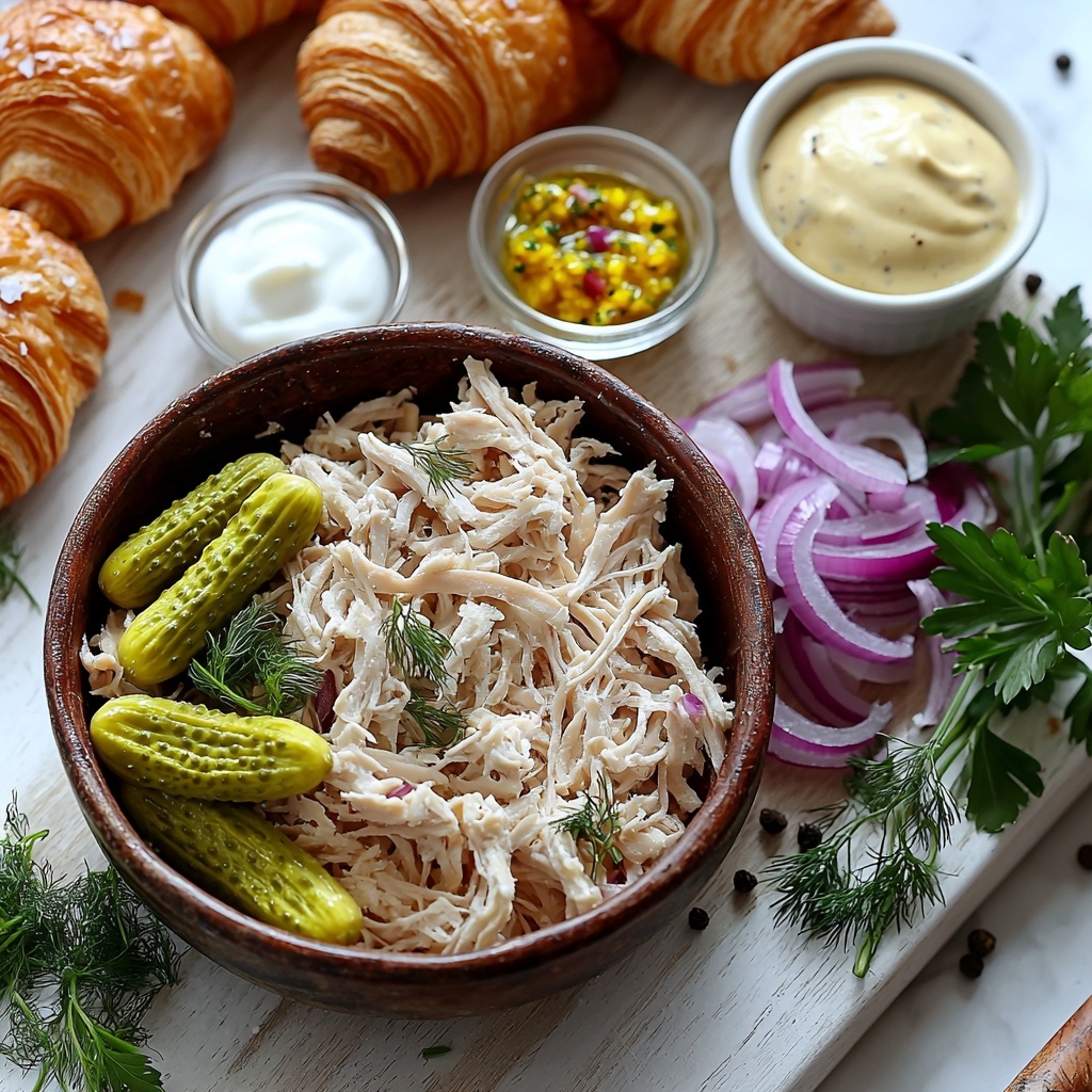 • Croissants, toast, or crackers (optional for serving): Ideal for serving and complement the salad’s creamy texture.