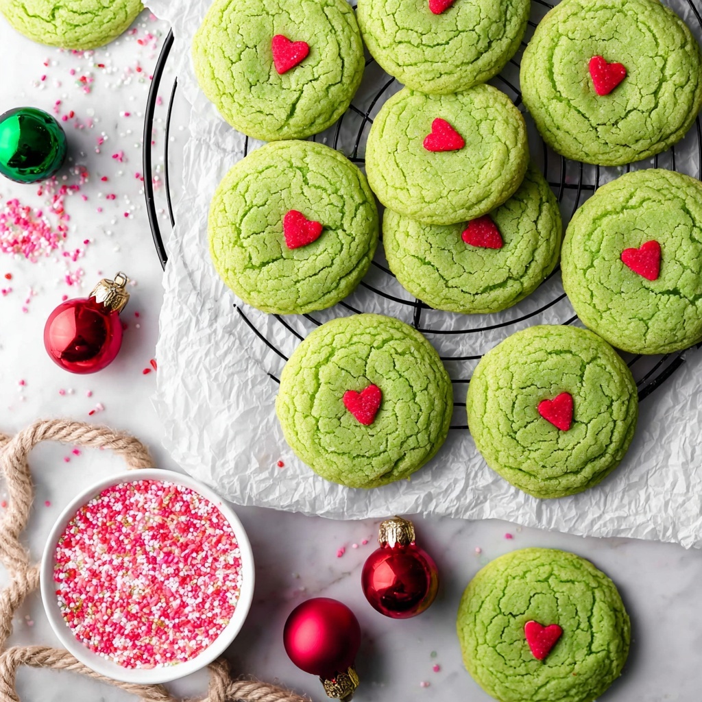 Serve your Grinch Cookies Recipe on a rustic wooden board layered with fresh pine branches for a Christmas party centerpiece that practically sparkles. You could also place them in festive tins or wrap them in cellophane with red ribbons to give as delightful homemade gifts that spread holiday joy far and wide.