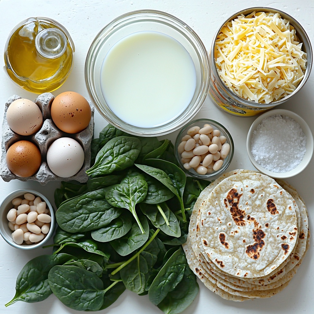 The magic of this Healthy Spinach Bean Breakfast Quesadilla Recipe lies in its simple but essential ingredients. Each component brings something special to the table, from the creamy eggs to the tender spinach and hearty beans, creating a balanced and colorful dish that’s as delightful to eat as it is easy to prepare.