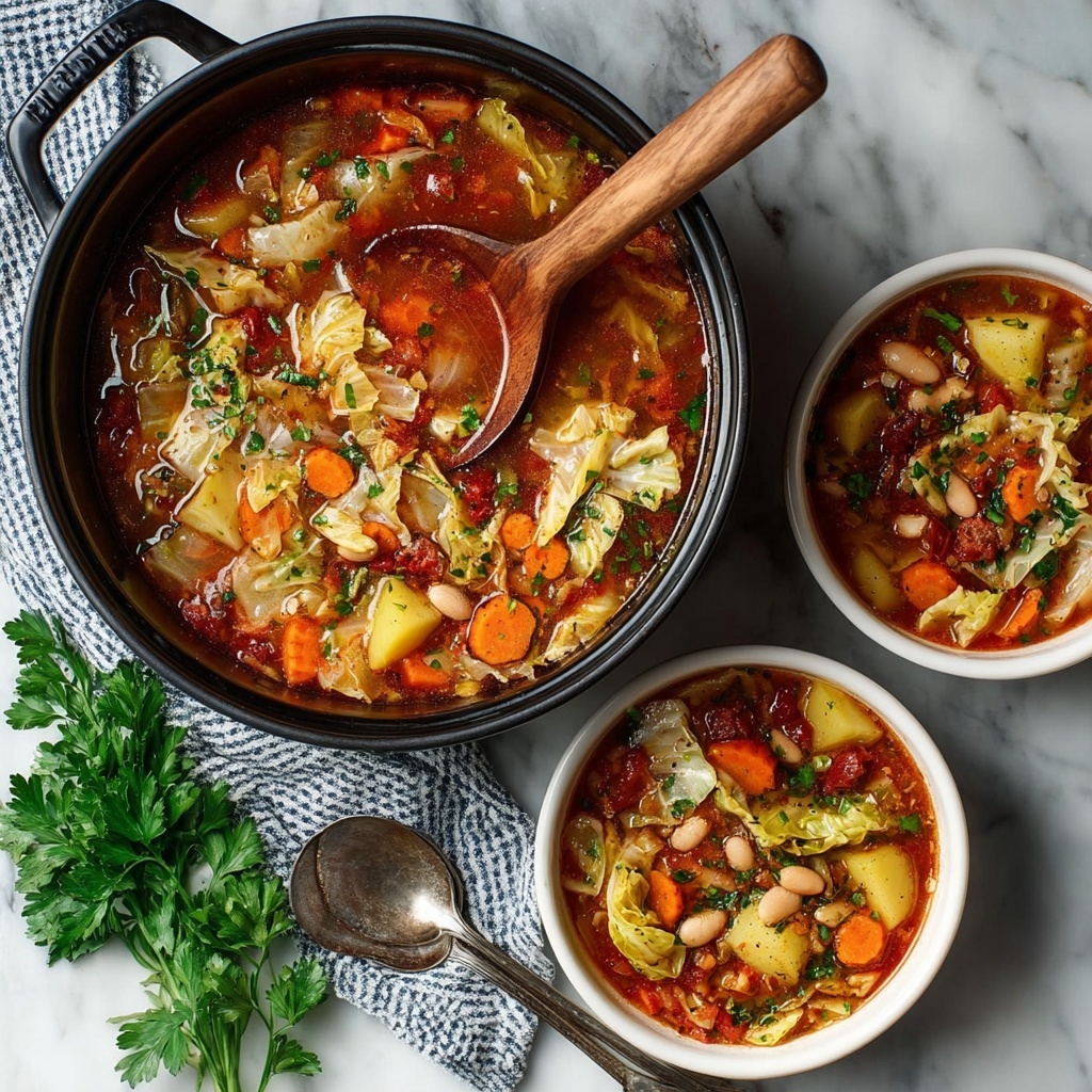 This hearty and nutritious cabbage soup is a comforting meal perfect for any season. Packed with fresh vegetables, white beans, and flavorful herbs, it’s simmered gently to develop a rich taste and tender texture. Ideal for a light lunch or warming dinner, this cabbage soup combines wholesome ingredients with simple preparation.