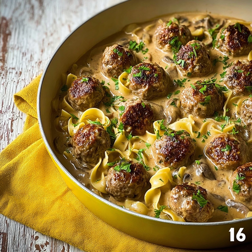 Yes! For vegetarians, try swapping meatballs for hearty mushroom or lentil-based balls and use vegetable broth. The creamy mushroom sauce is naturally rich and satisfying on its own.