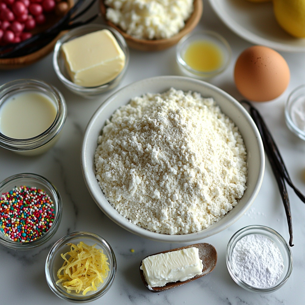 The magic of this Italian Ricotta Cookies Recipe comes from a handful of straightforward ingredients, each carefully chosen to create that perfect soft texture and fresh flavor. From creamy ricotta to bright lemon zest, every component plays its part in crafting these irresistibly moist cookies.