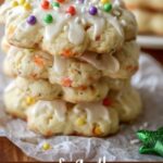 Let the cookies cool on the baking sheet for 5 minutes before transferring them to a wire rack to cool completely. Then, prepare the glaze by whisking together powdered sugar, milk, vanilla extract, and lemon juice until smooth. Drizzle this lovely glaze over the cooled cookies and sprinkle with optional sprinkles or nonpareils for a fun, festive touch.