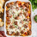 Short, tubular pasta like ziti, penne, or rotini are perfect because they hold the sauce and meatballs well. Avoid very thin or long noodles since they might overcook or not blend as well in the casserole.