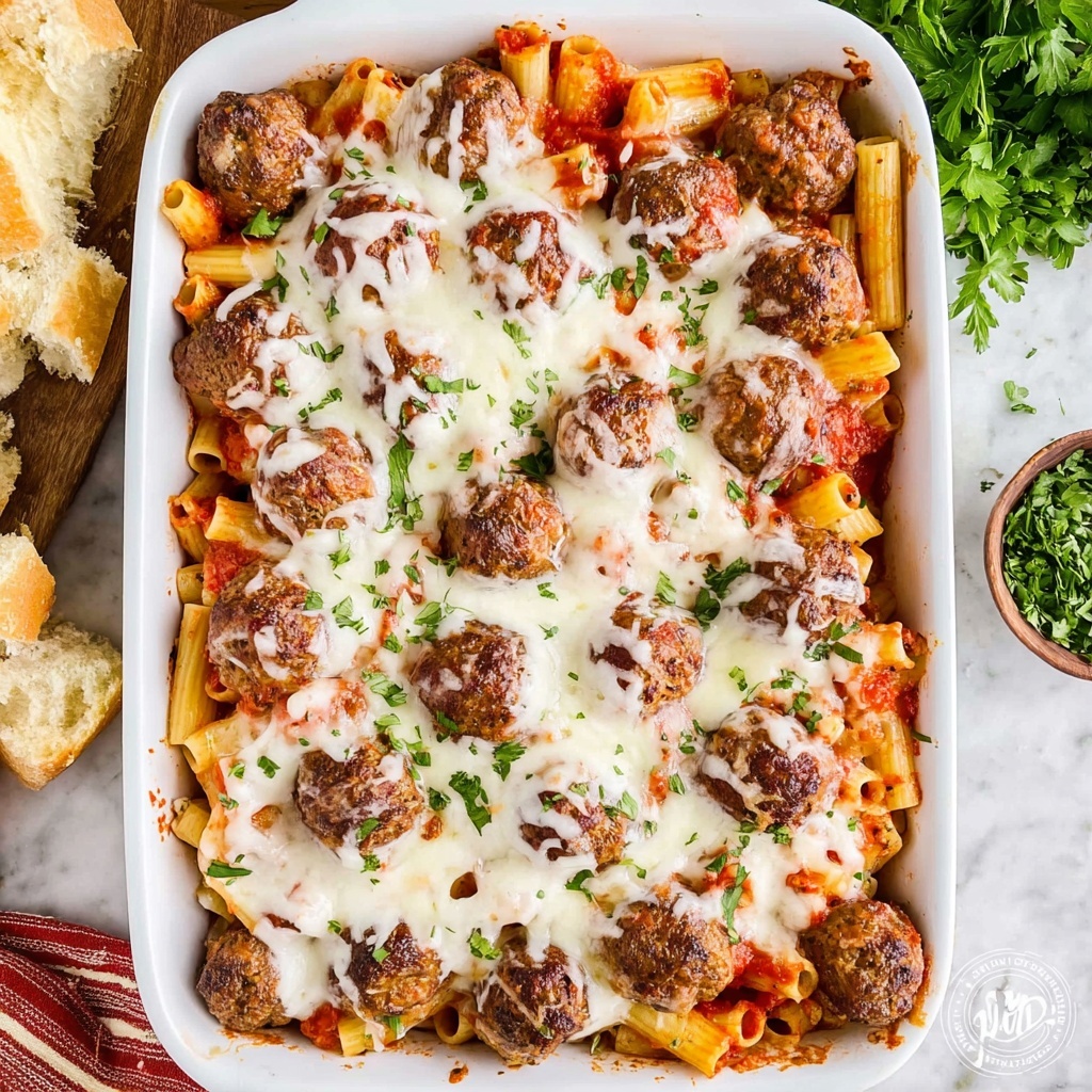 The final step is the best part—serve your Meatball Casserole hot from the oven. A sprinkle of fresh chopped parsley adds a lovely pop of color and freshness, and pairing it with some crusty bread takes the meal to the next level. Dig in and enjoy every gooey, comforting bite!