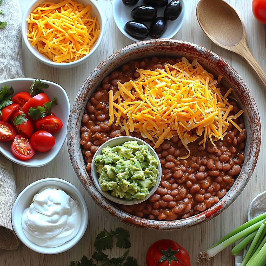 Absolutely! Substitute the sour cream with a plant-based version, use vegan cheese or nutritional yeast, and ensure your refried beans don’t contain lard. The rest of the ingredients are naturally vegan-friendly, making this dip just as delicious without dairy.