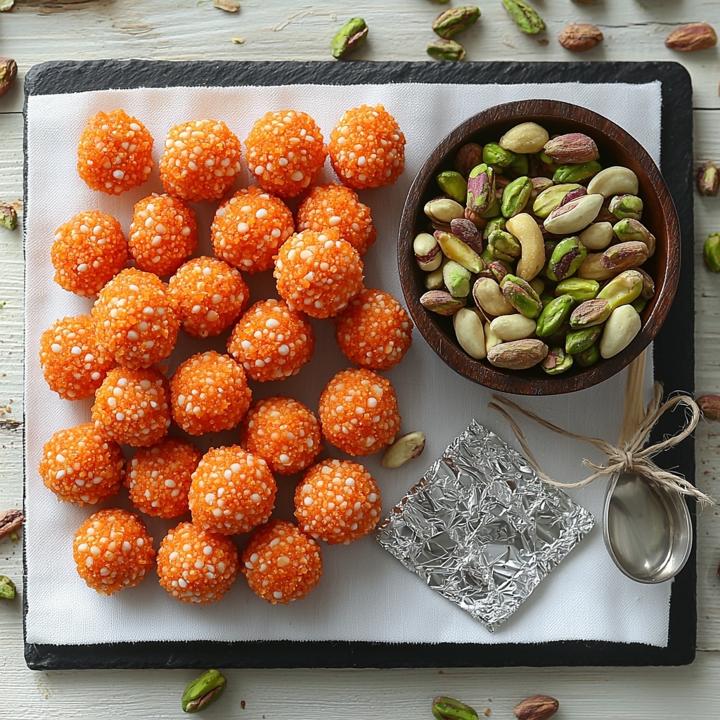 This Motichoor Ladoo Truffles: Irresistibly Creamy Indulgence Recipe comes together with a handful of simple yet essential ingredients that harmonize wonderfully to create layers of flavor and texture. Each component plays a starring role, from the fragrant, crumbly ladoos to the creamy chocolate coating and crunchy nut topping.