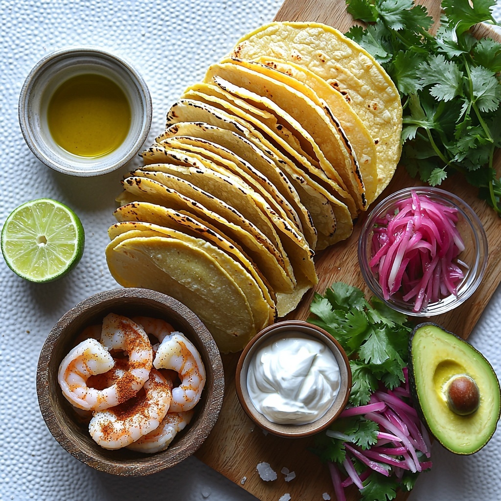 - Assemble the tacos: Layer each warmed tortilla with a portion of the cabbage slaw, seared shrimp, sliced avocado, and drizzle with the lime garlic crema. Top with chopped cilantro and, if desired, pickled red onions. Serve immediately for best freshness.