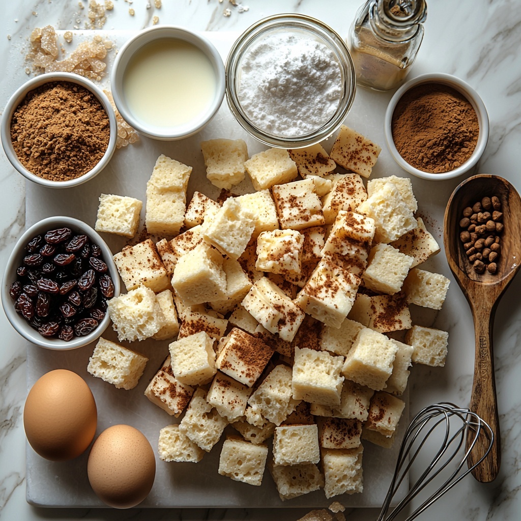 - 6 cups stale bread, cubed (preferably challah or brioche): Using slightly stale bread ensures it soaks up the custard perfectly without turning mushy.