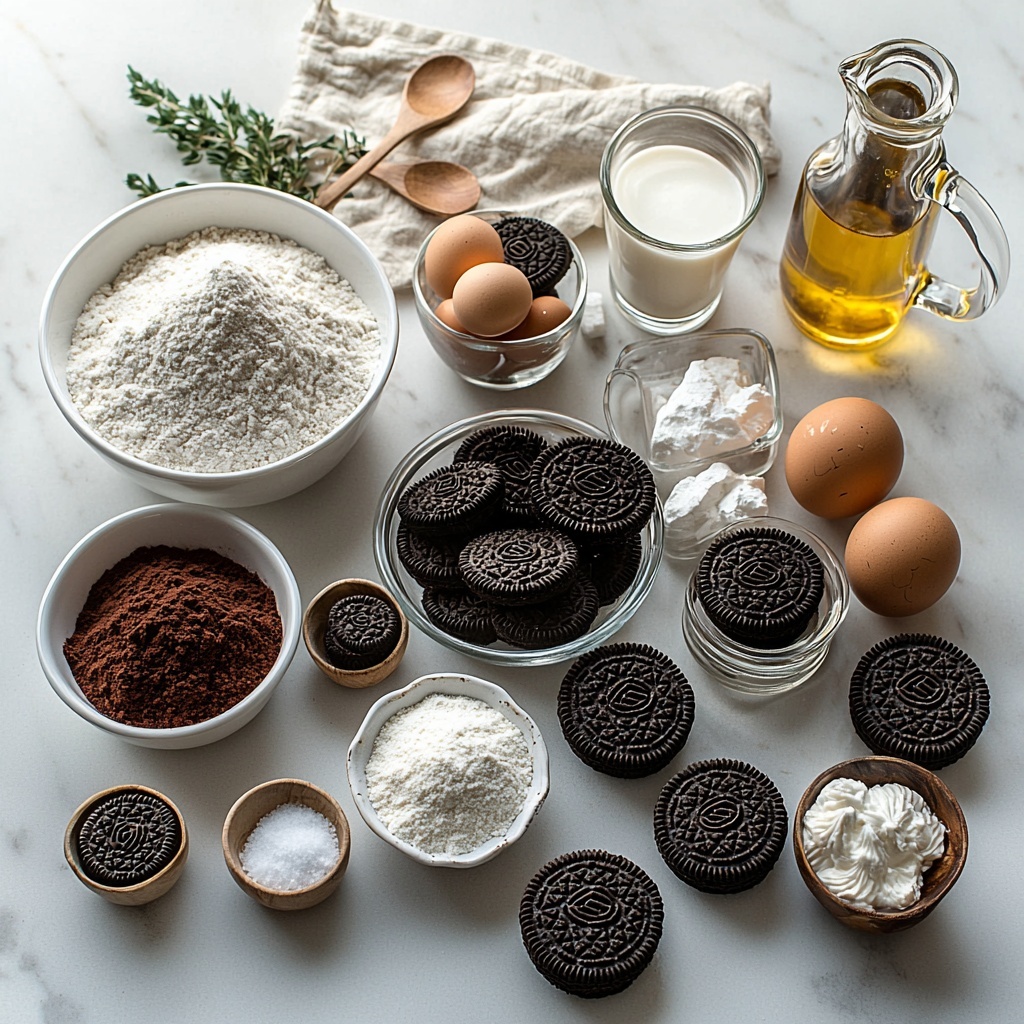 The magic of this Oreo Cupcakes Recipe lies in a blend of simple, pantry-friendly ingredients that come together to create an extraordinary dessert. Each ingredient plays a vital role in achieving the perfect texture, rich flavor, or ideal consistency, from the cocoa-rich flour mixture to the luscious cream cheese frosting dotted with Oreo crumbs.