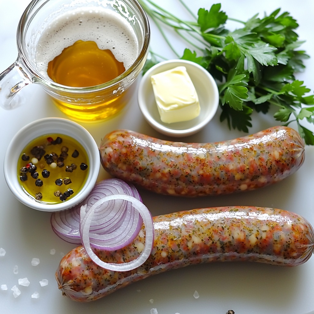 - 1 cup beer (lager or ale): Beer adds depth, subtle bitterness, and helps tenderize the sausages during braising.