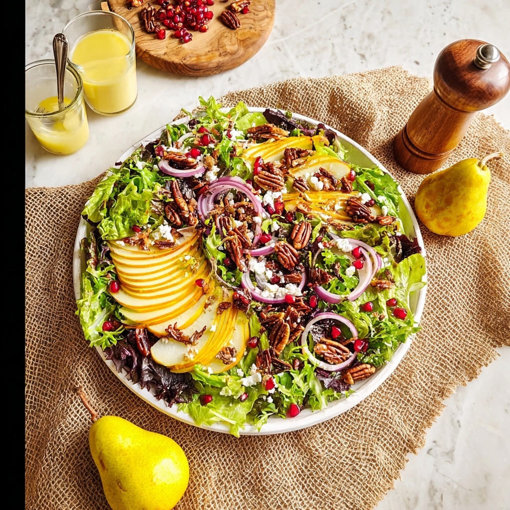 If you love vibrant, fresh flavors that celebrate the best of fall’s bounty, the Pear Pomegranate Salad with Maple Dijon Vinaigrette Recipe will quickly become one of your go-to dishes. This salad is a delightful harmony of textures and tastes—crisp pears, juicy pomegranate arils, crunchy glazed pecans, and creamy feta come together like a flavor party in every bite. Dressed with a sweet and tangy maple Dijon vinaigrette, it’s an easy yet elegant dish perfect for weeknight dinners, holiday feasts, or anytime you want to brighten your table with something special.