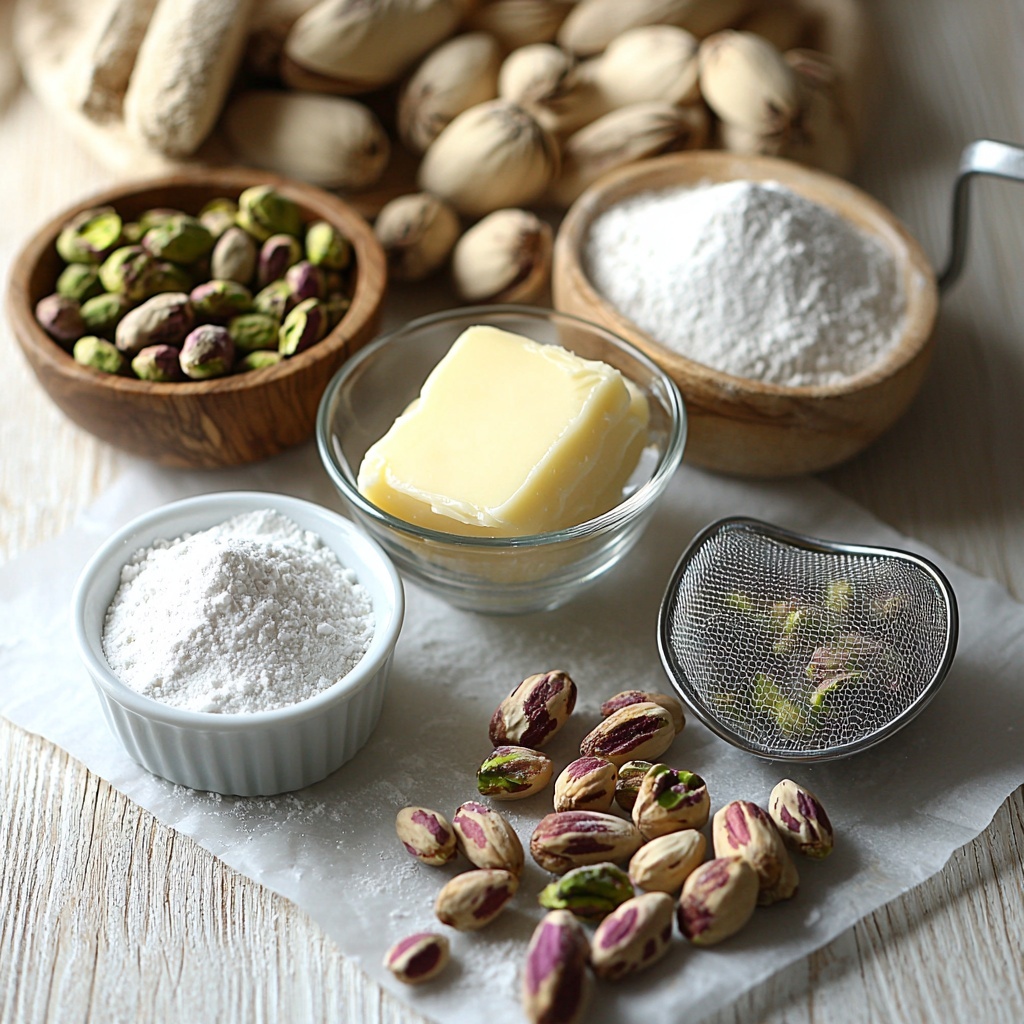 The beauty of this recipe lies in its simplicity—each ingredient plays an essential role in creating the soft, flavorful cookies you’ll adore. From the creamy butter that provides richness to the finely ground pistachios that add an irresistible nutty crunch, every component is thoughtfully selected for harmony and texture.