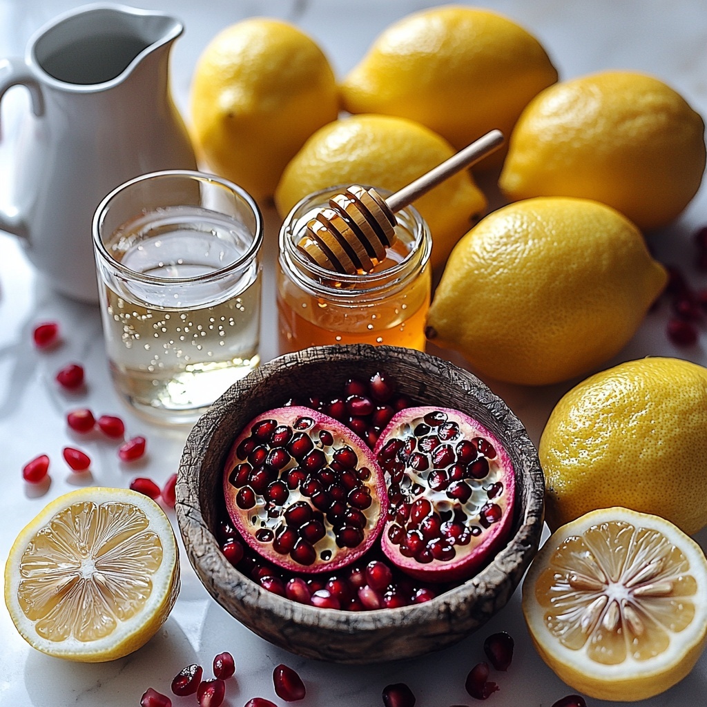 Gathering the right ingredients is what makes this Pomegranate Lemonade Recipe so memorable. Each component is simple yet essential, contributing to the perfect harmony of taste, color, and texture in the final glass.