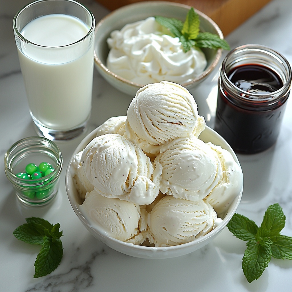Start by scooping two generous cups of vanilla ice cream into your blender, then pour in one cup of milk. This blend forms the creamy foundation of your minty shake, so make sure your ice cream is soft enough to blend smoothly.