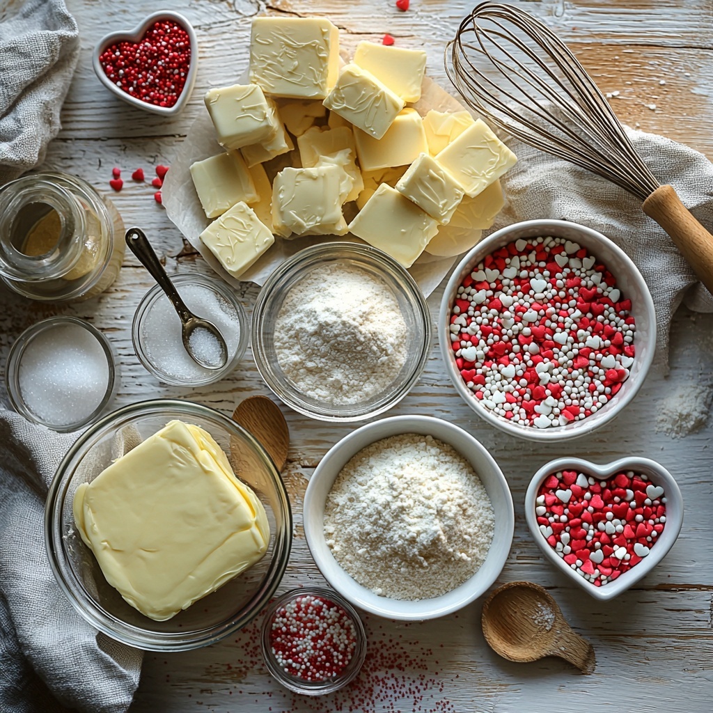 To make the perfect Slice and Bake Heart Cookies Recipe, you only need a handful of classic pantry staples that work together seamlessly. Each ingredient plays a specific role, from giving structure and sweetness to creating that melt-in-your-mouth texture and subtle vanilla aroma.