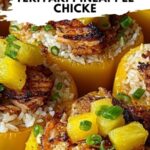 Teriyaki Pineapple Chicken and Rice Stuffed Peppers are a deliciously sweet and savory dish featuring shredded chicken blended with teriyaki sauce, juicy pineapple, and seasoned rice, all baked inside colorful bell peppers. This meal offers a flavorful combination of tender chicken, tangy pineapple, and savory spices, making it a perfect family-friendly dinner that’s both nutritious and satisfying.