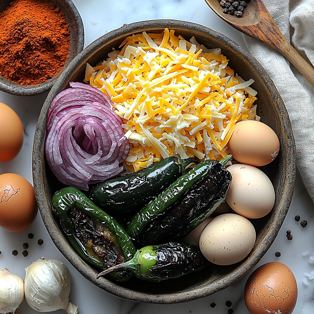 Start by roasting the poblano peppers until their skins are nicely charred and blistered. You can do this over an open flame or under the broiler — either way, that smoky char is non-negotiable. Once roasted, let them cool enough to handle, then peel off the skin gently. This step is key because it softens the peppers and infuses a beautiful roasted flavor that sets the foundation for this casserole magic.